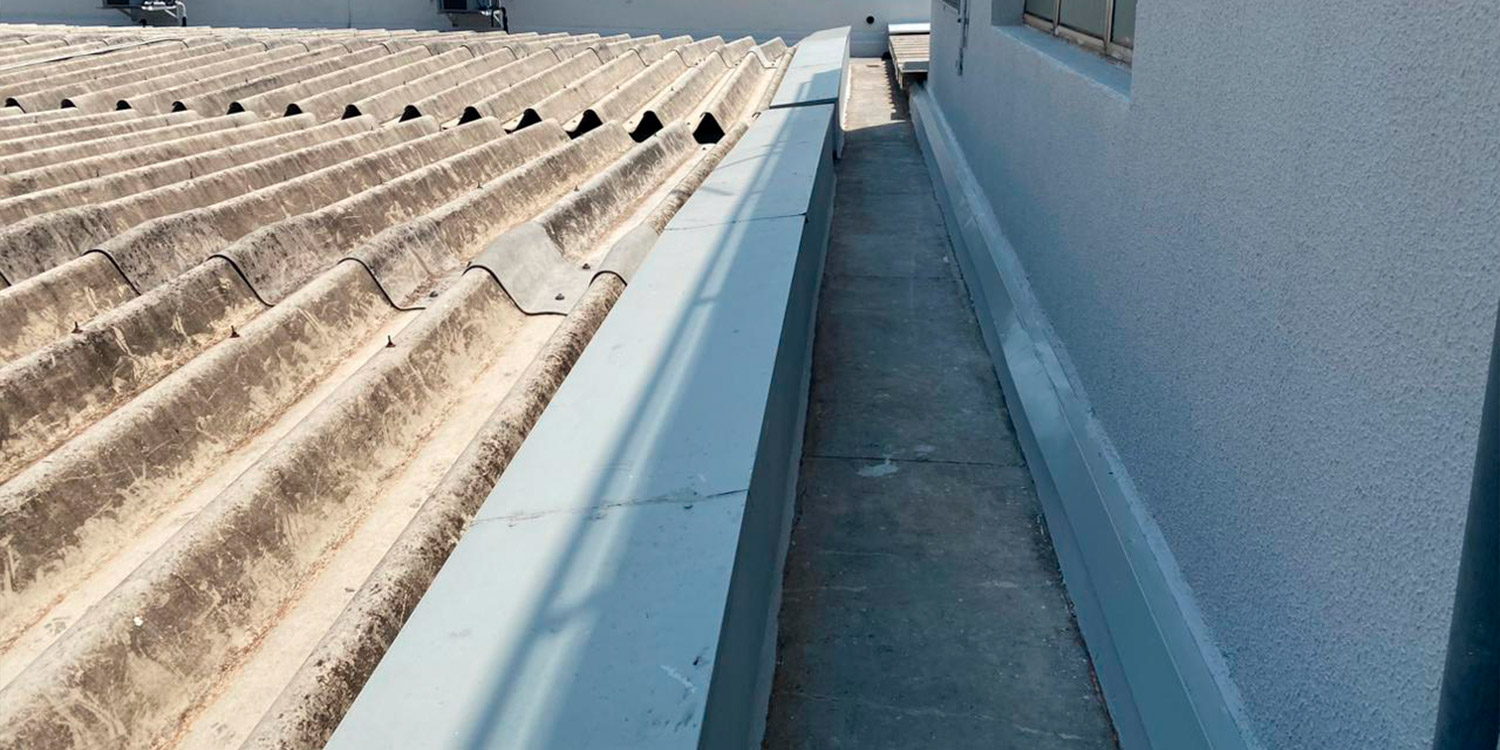 Impermeabilização de lajes e viga-calhas em área crítica.
