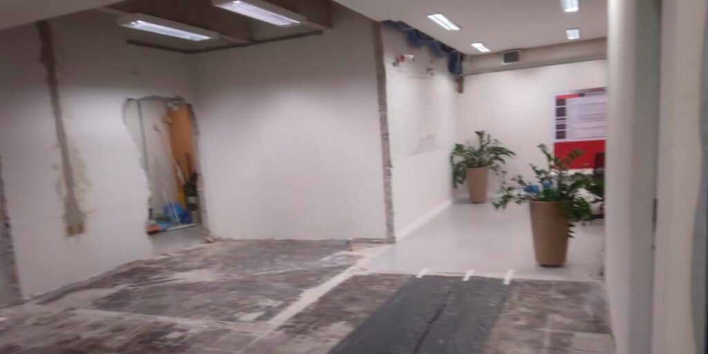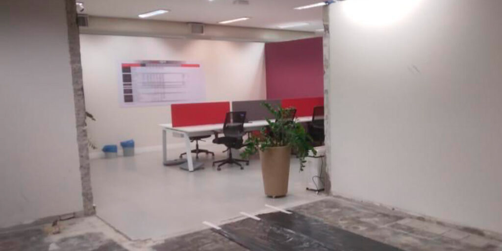 Para que o atendimento não sofresse interrupções, implementamos um cronograma meticuloso de isolamento das áreas em obra. Grande parte das intervenções de alto impacto foi deslocada para horários fora do expediente bancário e finais de semana, garantindo que a produtividade interna e o fluxo de clientes fossem preservados.