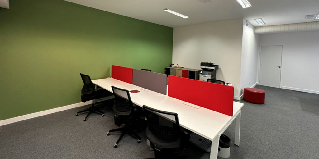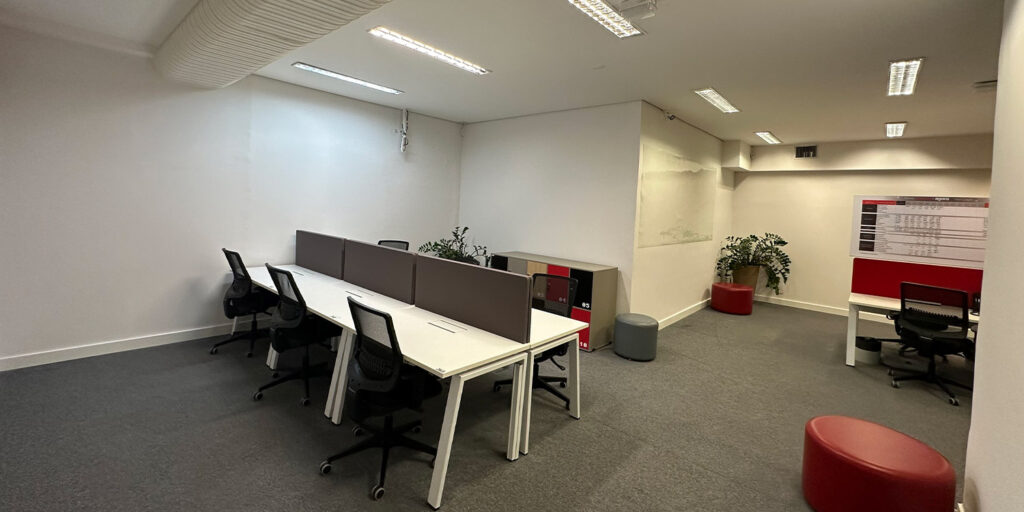 Definimos rotas de acesso exclusivas para equipes e materiais, impedindo que a movimentação de obra interferisse no trajeto de funcionários e clientes. O gerenciamento de resíduos, poeira e ruído foi constante, utilizando barreiras físicas e limpeza programada para manter o padrão de conforto ambiental e a higiene do espaço corporativo.